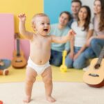 | 4–7 | Reagál a nevére, felismeri a hangszíneket. | Reduplikált gagyogás (pl. ‘ma-ma-ma’), magánhangzók gyakorlása. |